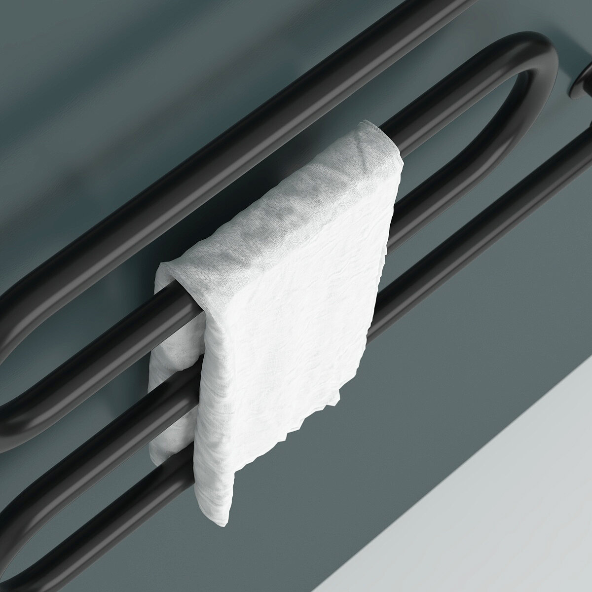 Купить Полотенцесушитель Водяной Onix, модель Hit Turn Black Right 500×800, М-образный, Черный матовый, полный комплект, с защитой от электрокоррозии с доставкой по всей России.