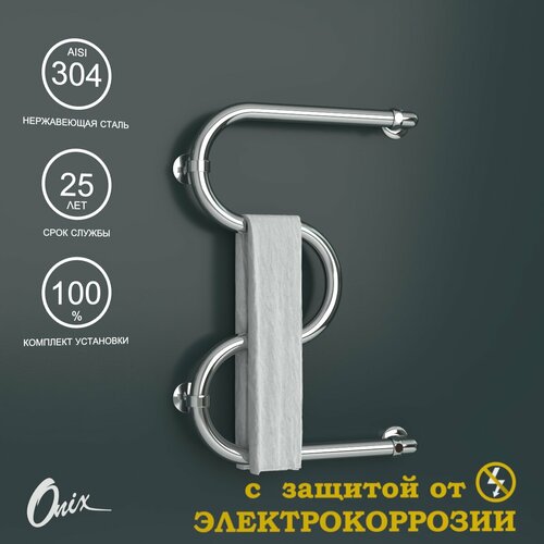 Купить Полотенцесушитель Водяной Onix, модель Hit Turn Chrome Right 600×400, М-образный, Хром, полный комплект, с защитой от электрокоррозии с доставкой по всей России.