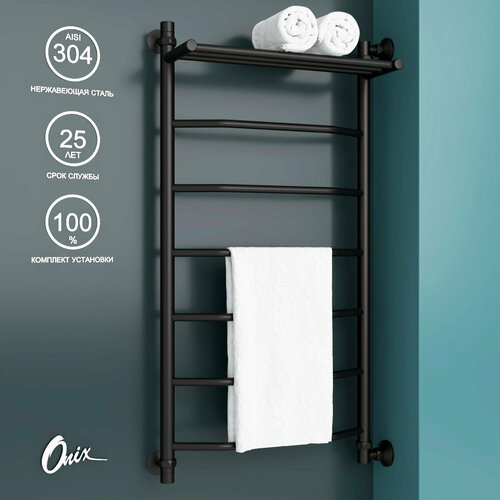 Купить Полотенцесушитель Водяной Onix, модель Orion Plus Black Right 500×1000 Лесенка с боковым подключением справа, Черный матовый, полный комплект с доставкой по всей России.