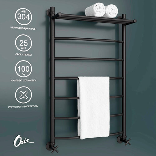 Купить Полотенцесушитель Водяной Onix, модель Orion Plus PRO Black 600×1000 Лесенка с нижним подключением, Черный матовый, полный комплект с доставкой по всей России.