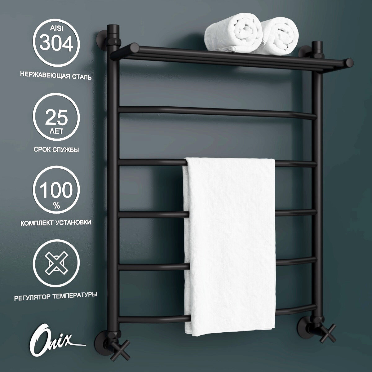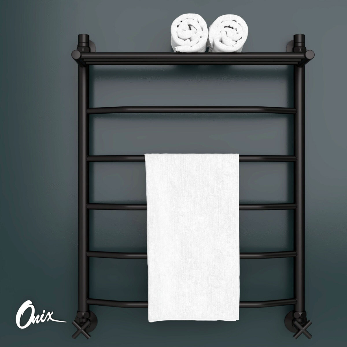 Купить Полотенцесушитель Водяной Onix, модель Orion Plus PRO Black 600×800 Лесенка с нижним подключением, Черный матовый, полный комплект с доставкой по всей России.