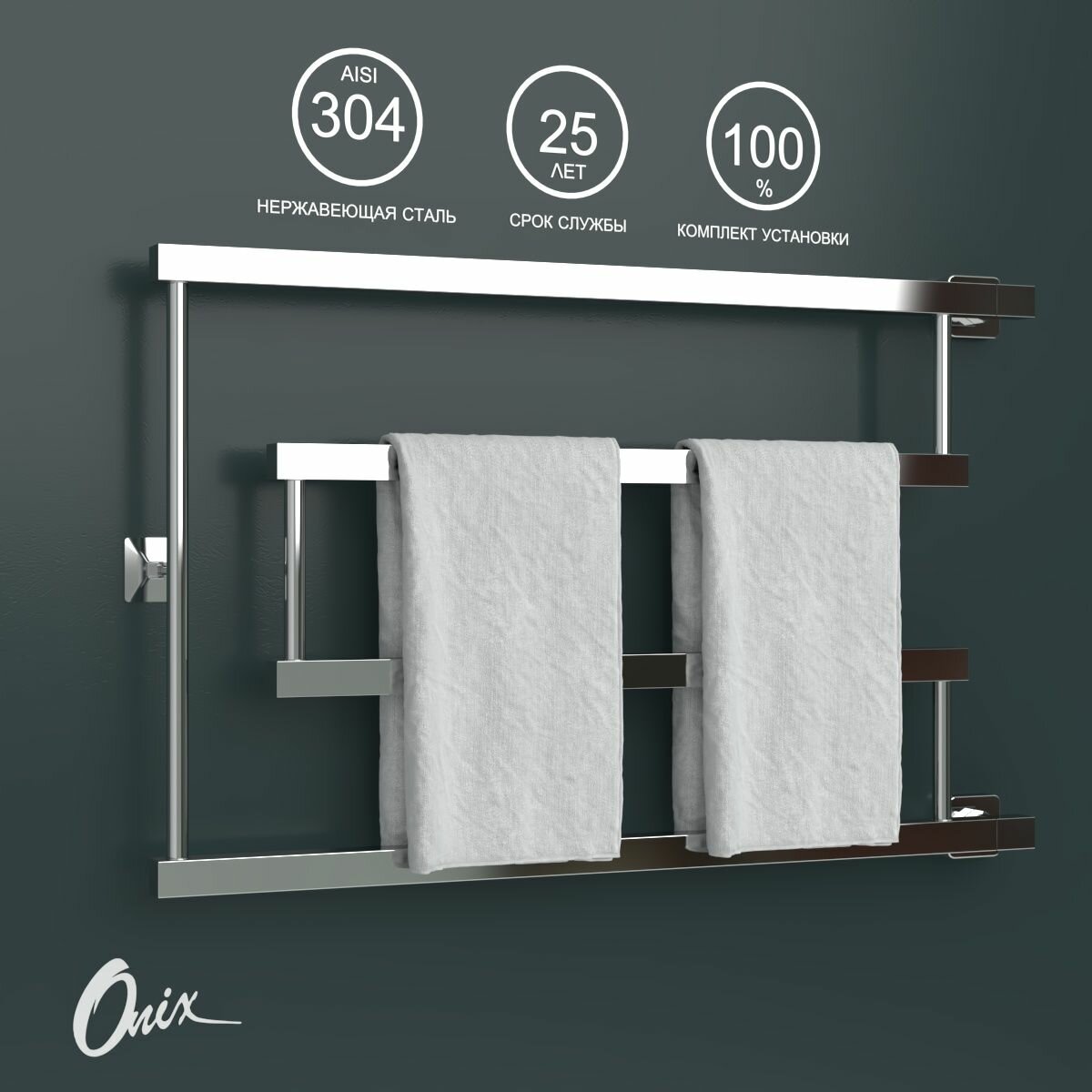Купить Полотенцесушитель Водяной Onix, модель Vega Turn Right 500×800, фокстрот с боковым угловым подключением справа, нержавеющая сталь, полный комплект с доставкой по всей России.