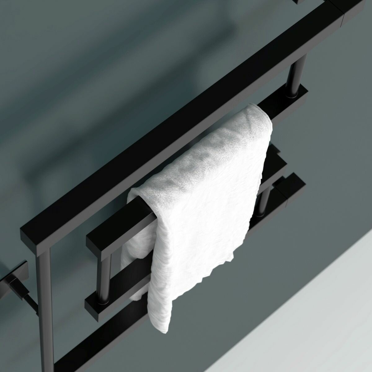 Купить Полотенцесушитель Водяной Onix, модель Vega Turn Right Black 500×500, фокстрот с боковым угловым подключением справа, черный, полный комплект с доставкой по всей России.