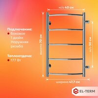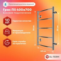 Полотенцесушитель водяной с боковым подключением EL-TERM (Эл-Терм) грас 400х700 500 мм, нержавеющая сталь: сравнение цен, характеристики, фото, актуальное наличие и цены.