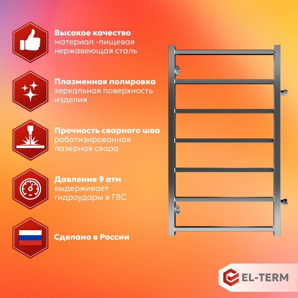 Купить Полотенцесушитель водяной с боковым подключением EL-TERM (Эл-Терм) рейн 500х900 мм 500 мм, нержавеющая сталь с доставкой по всей России.