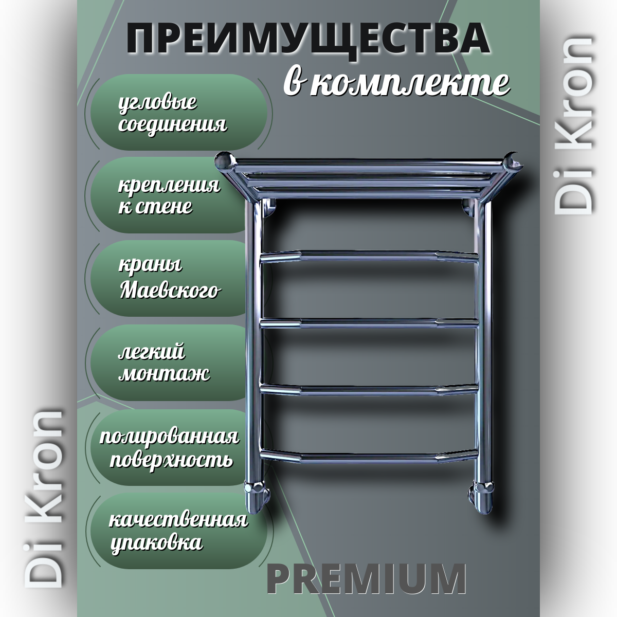 Полотенцесушитель Водяной с полкой Di Kron, модель Premium-T 600х500 из нержавеющей стали, 3 вида подключения, лесенка: сравнение цен, характеристики, фото, актуальное наличие и цены.