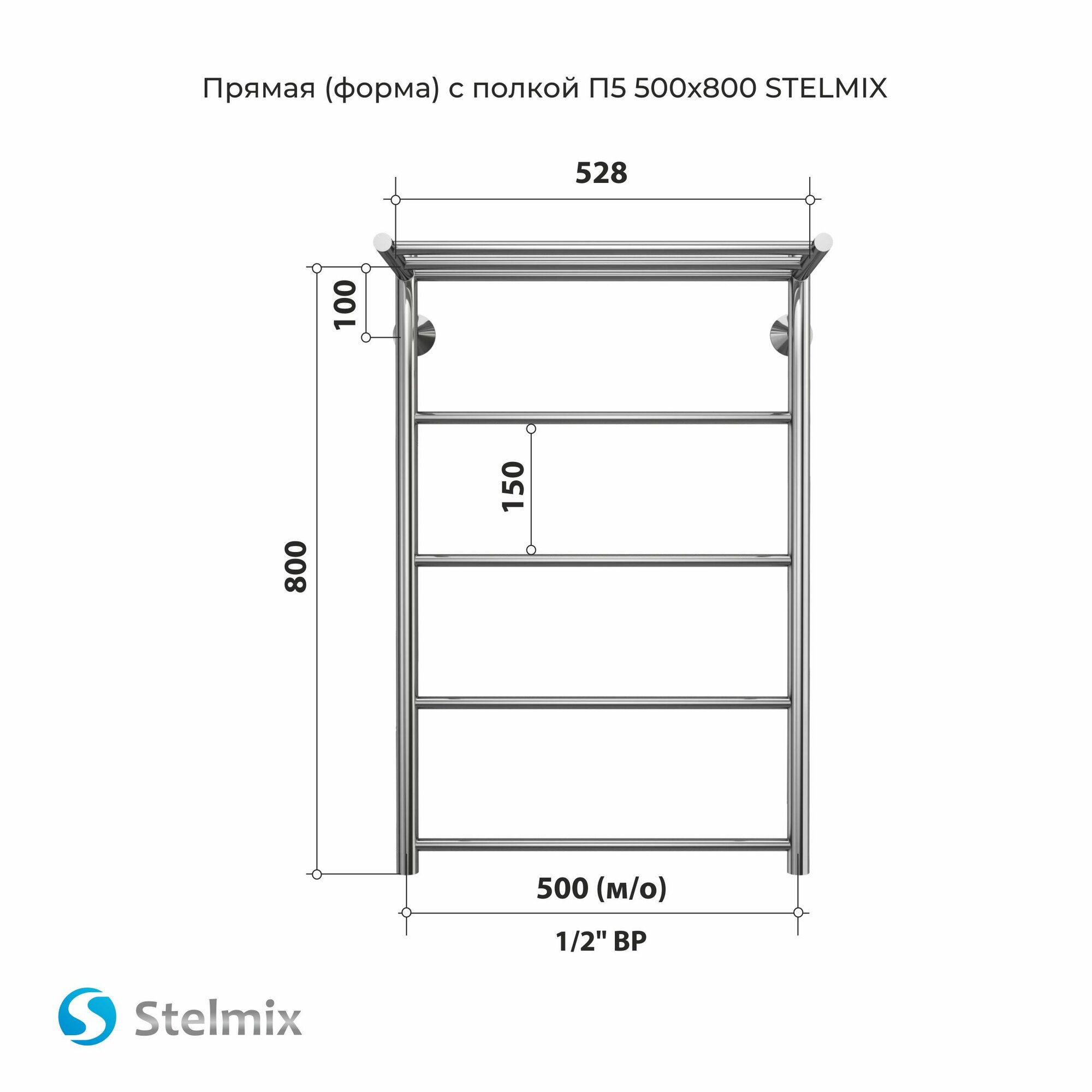 Купить Полотенцесушитель водяной STELMIX (стелмикс) Прямая форма П5 500х800 мм, нержавеющая сталь с доставкой по всей России.
