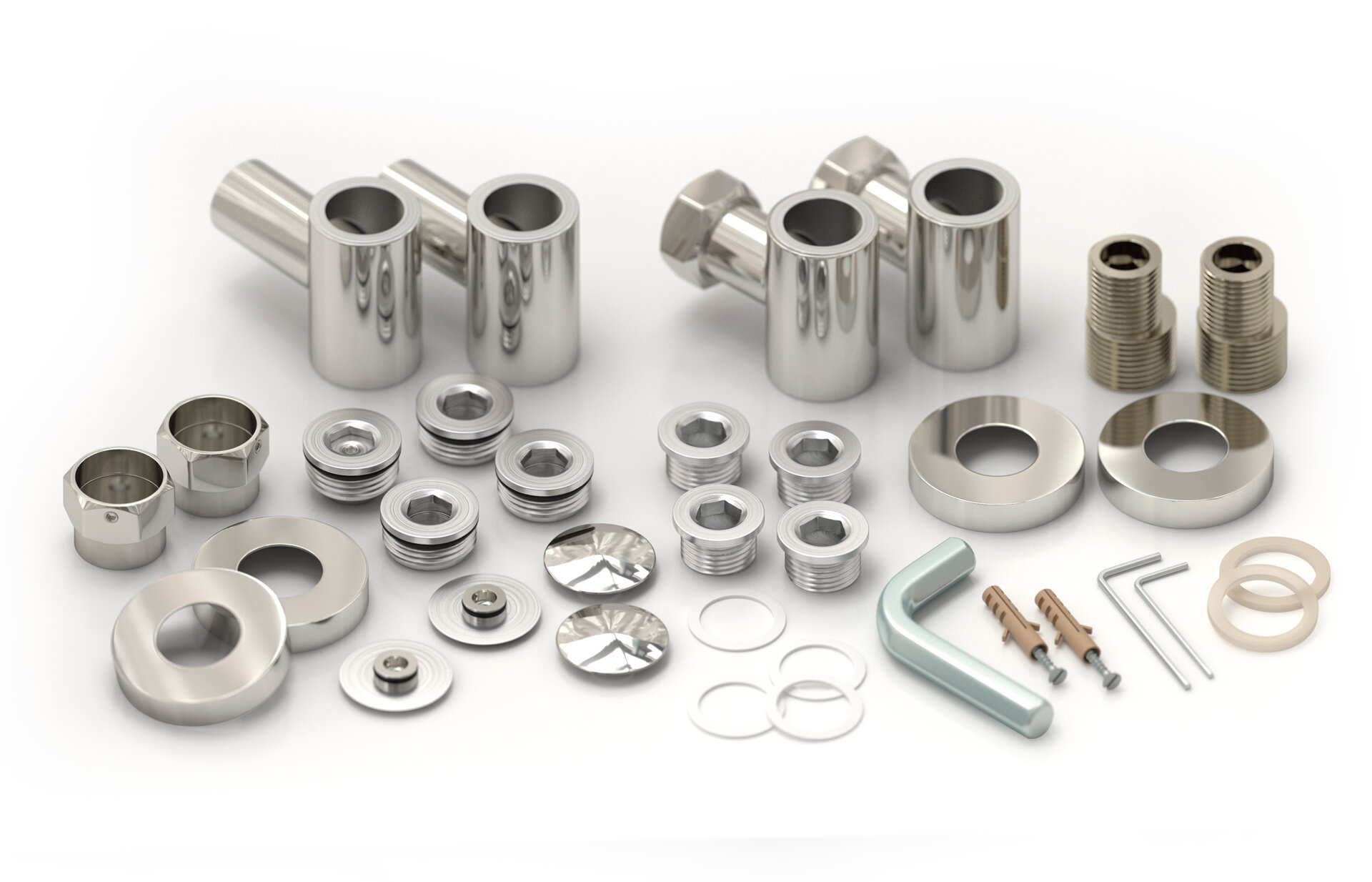 В комплекте есть всё необходимое для нижнего, вертикального и диагонального подключения. Неважно, какой способ подключения вы выберете: внешний вид модели останется неизменным, а угловые элементы – симметричными.