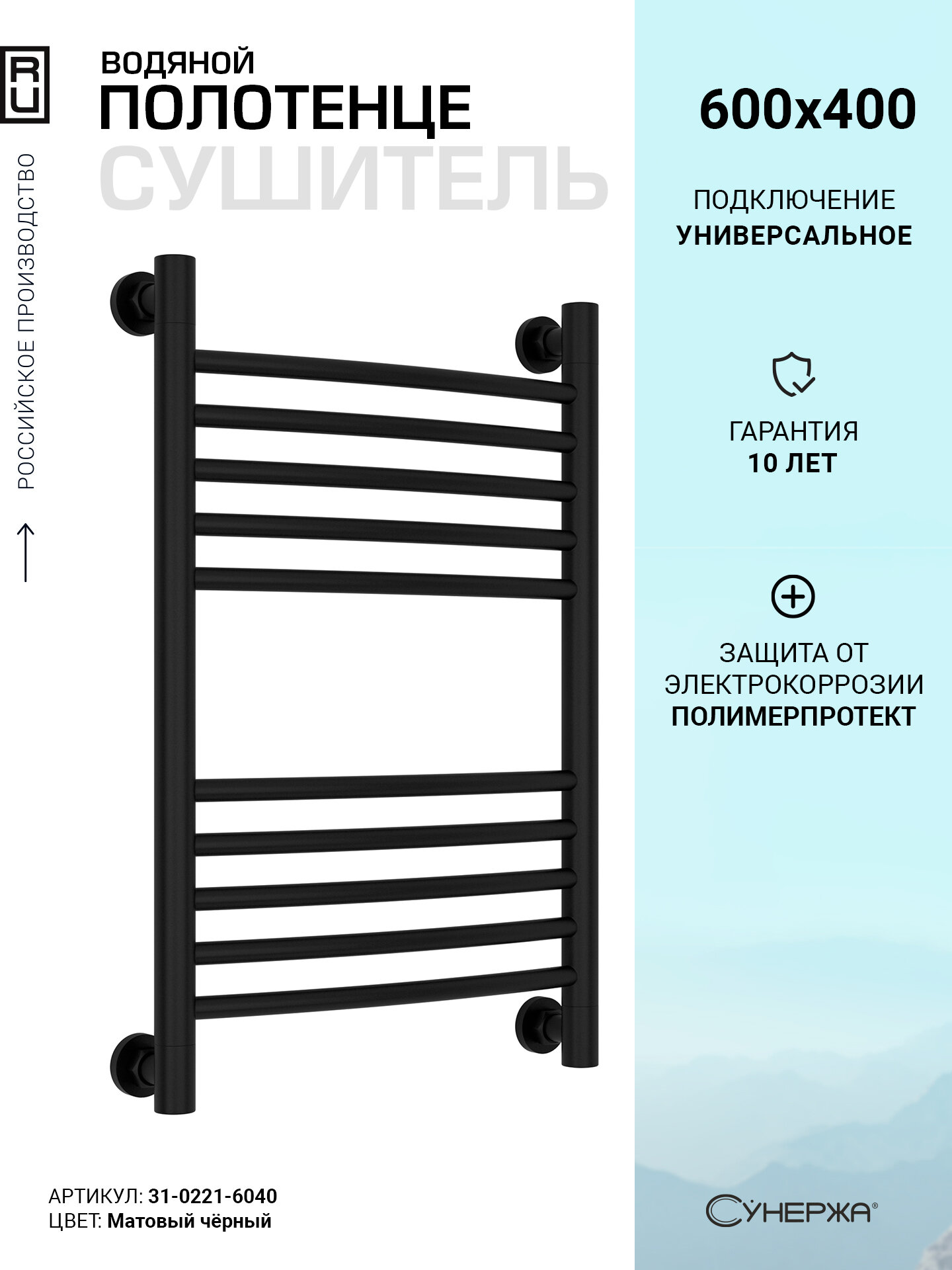 Купить Полотенцесушитель водяной Сунержа Богема+ выгнутая 600х400 Матовый чёрный с доставкой по всей России.