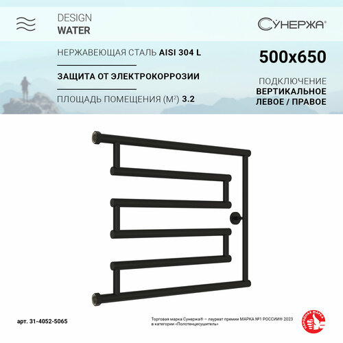 Купить Полотенцесушитель водяной Сунержа High-Tech model «L+» 500х650 Матовый чёрный с доставкой по всей России.