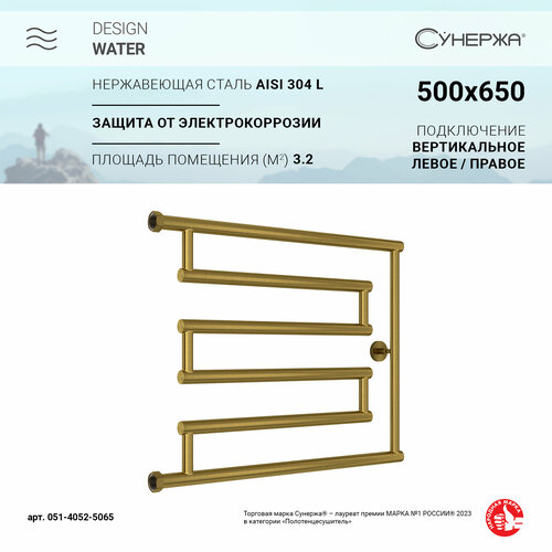 Купить Полотенцесушитель водяной Сунержа High-Tech model «L+» 500х650 Состаренная латунь с доставкой по всей России.