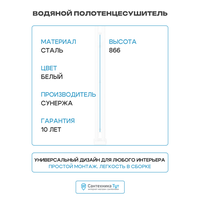 Водяной полотенцесушитель Сунержа Нюанс EU50+ 840х50 12-0212-0840 Белый нержавеющая сталь