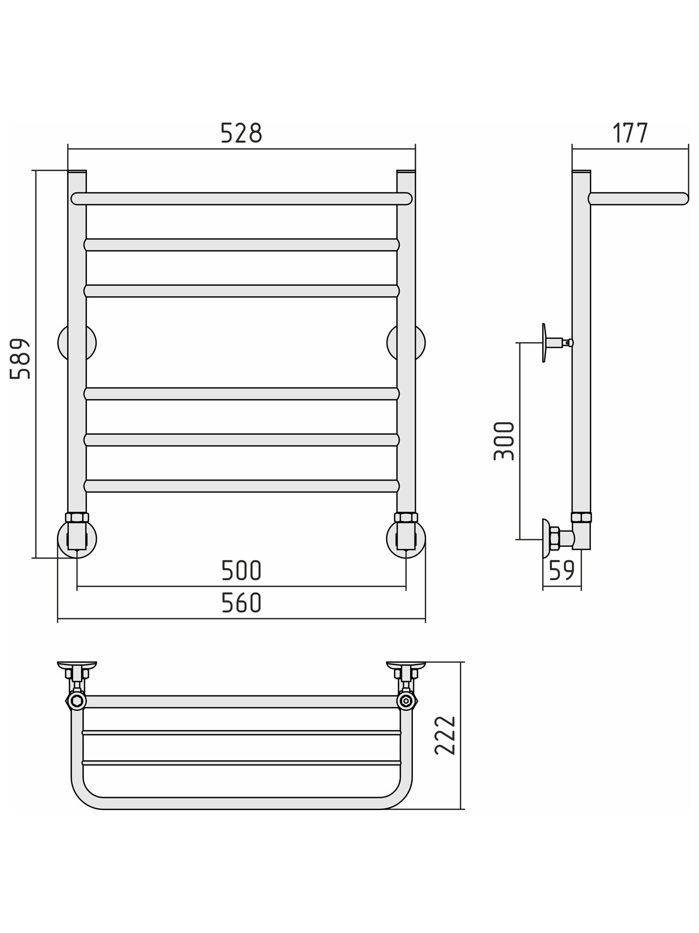 Купить Полотенцесушитель водяной Сунержа ВПС-38 600х500 (Полка +2+3) П 18 Без покрытия с доставкой по всей России.