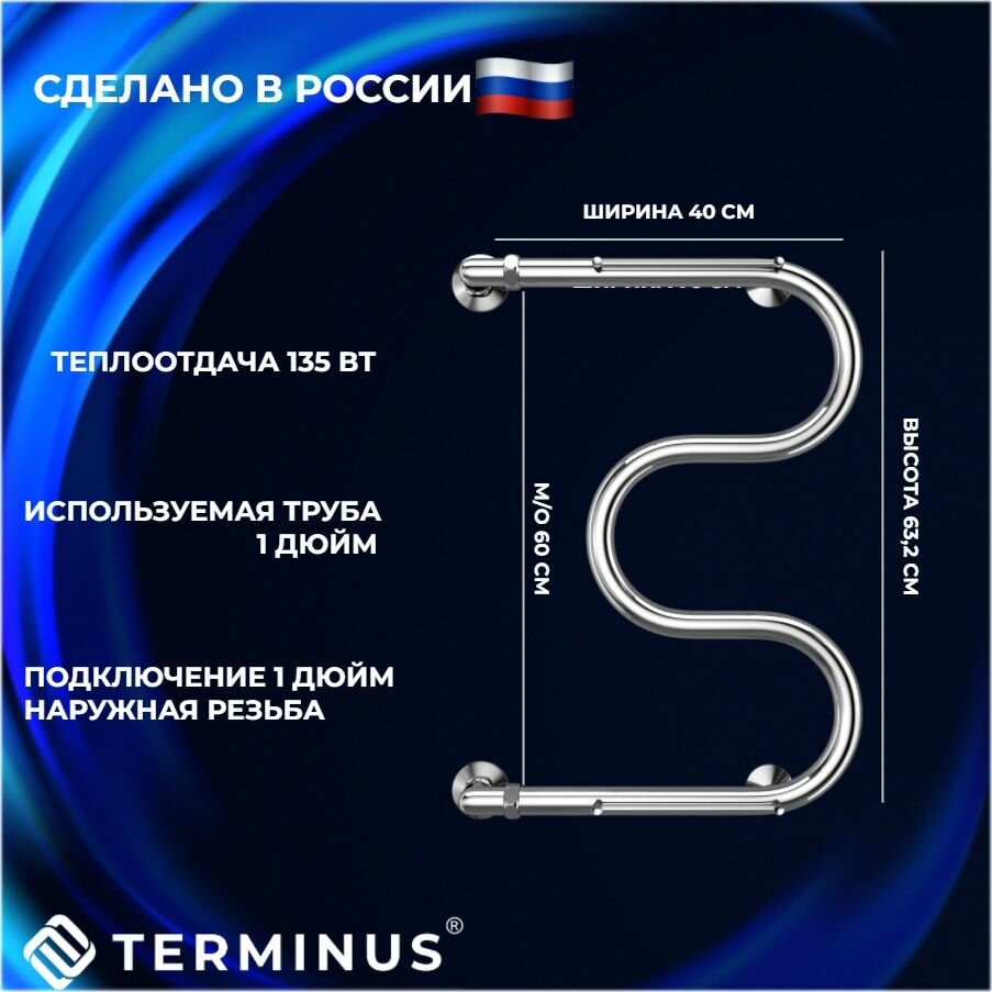 Полотенцесушитель водяной TERMINUS (Терминус) М-образный с полкой 600х400 мм, боковое подключение 600 мм: сравнение цен, характеристики, фото, актуальное наличие и цены.