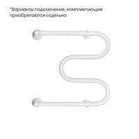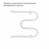 Полотенцесушитель имеет М-образную форму, горизонтальное межосевое расстояние составляет 50 см, а диаметр трубы – 1". Максимальная температура нагрева составляет 95°C.