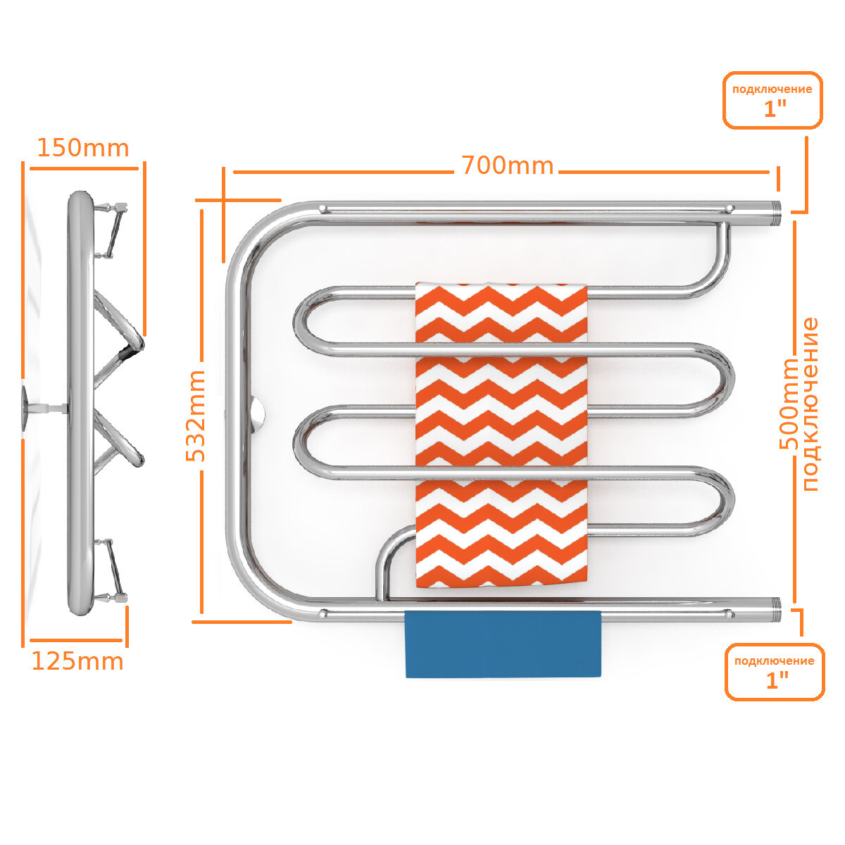Полотенцесушитель водяной ZIGZAG Фокстрот модель Dw c полочками 500х700 мм: сравнение цен, характеристики, фото, актуальное наличие и цены.