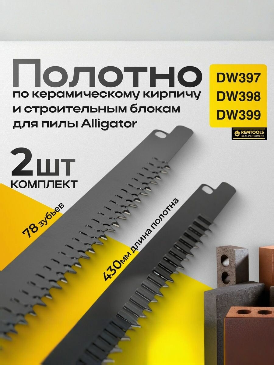 Полотно для аллигаторной пилы, Remtools, 430 мм, 78 зубьев / Керамический кирпич POROTHERM, POROTON: сравнение цен, характеристики, фото, актуальное наличие и цены.