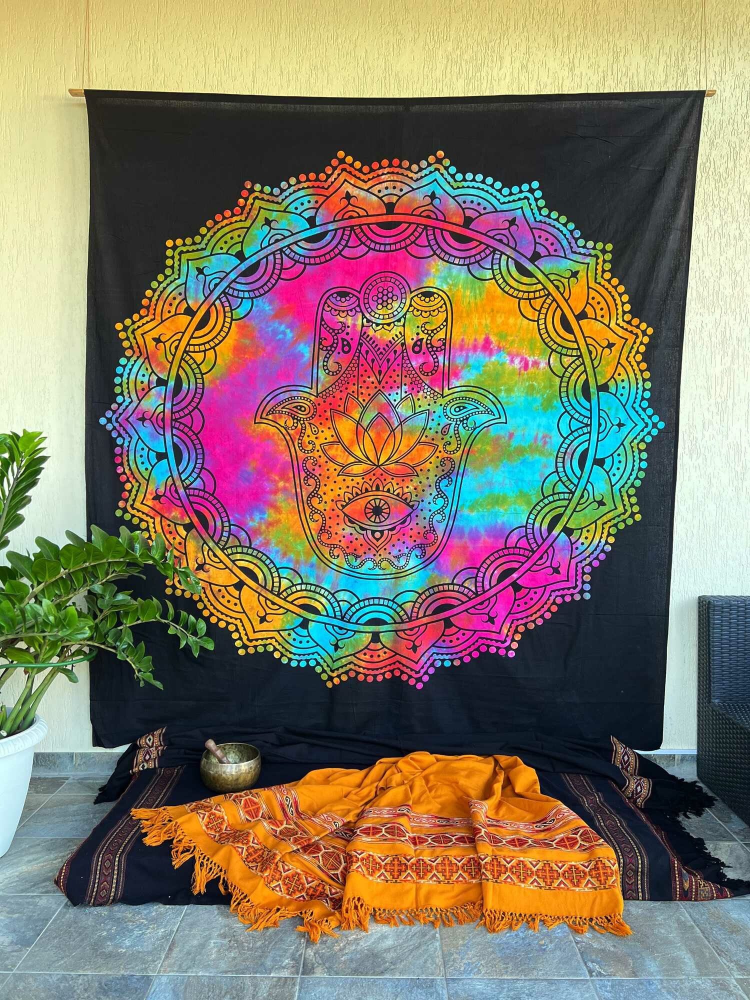 Настенный декор "Хамса" - это текстильное полотно размером 220x210 см, выполненное в этно стиле. Оно станет отличным дополнением к интерьеру, придавая ему восточный колорит.