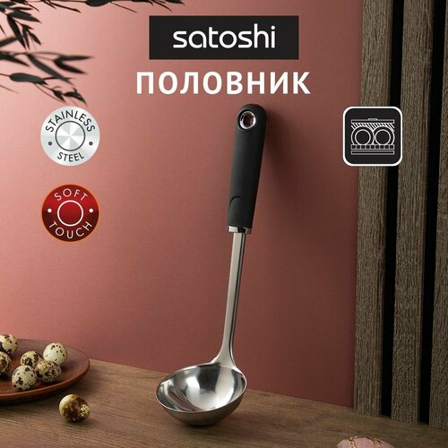 Половник SATOSHI "Лоран" выполнен в стильном черном цвете, который будет гармонично смотреться на любой кухне. Длина половника составляет 32 см, что делает его удобным для использования даже в больших кастрюлях.