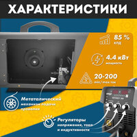 Сварочный инверторный полуавтомат ELITECH HD WM 200 SYN. 60% ПВ