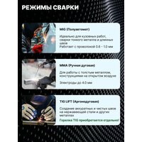 | Дополнительные функции | антиприлипание, горячий старт, защита от перегрева, форсаж дуги |