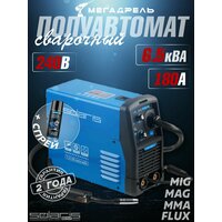Купить Полуавтомат сварочный инверторный SOLARIS MIG-200EM + Спрей антипригарный, с газом и без, напряжение холостого хода, В 84, макс. ток, А 180, мощность 5.72 кВт, сварочник с доставкой по всей России.