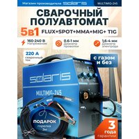 Сварочный полуавтомат Solaris MULTIMIG-245 — профессиональное многофункциональное оборудование для всех видов сварочных работ. Аппарат поддерживает 5 технологий сварки (MIG/MAG, порошковой проволокой FLUX, точечную SPOT, ручную MMA и TIG), что делает его универсальным решением для мастерских, автосервисов и промышленного применения.