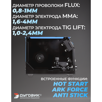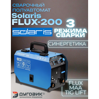 Полуавтомат сварочный Solaris FLUX-200 (230В; 20-180 А; FLUX/MMA/TIG LIFT; байонетный разъем; без подкл. газа): сравнение цен, характеристики, фото, актуальное наличие и цены.