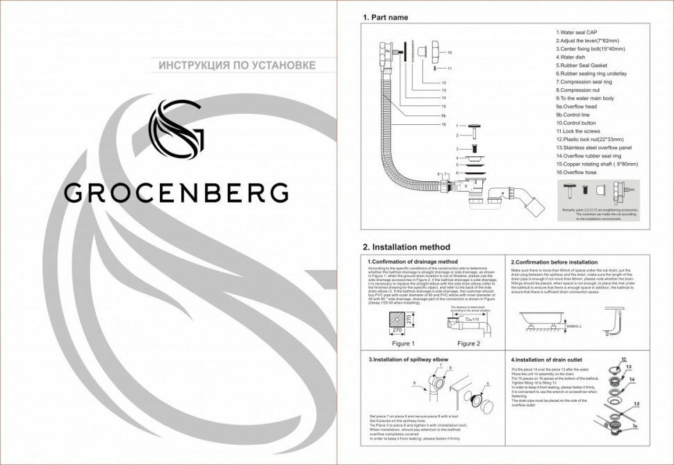 Полуавтоматический сливы-перелив для ванны Grocenberg GB240 Бронза: сравнение цен, характеристики, фото, актуальное наличие и цены.