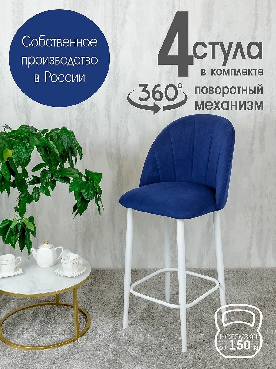 Купить Полубарные стулья для кухни поворотные со спинкой Лотос 4 шт, синий с доставкой по всей России.