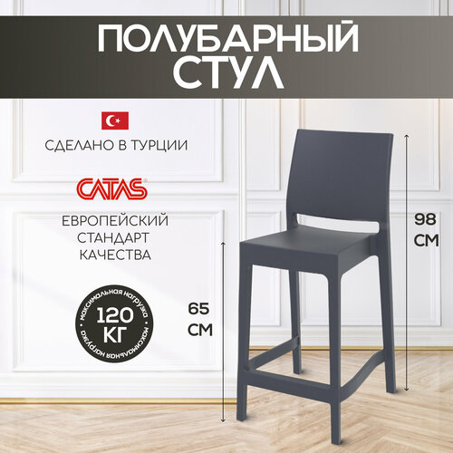 Купить Полубарный стул Maya Bar Siesta 65, со спинкой, пластиковый для кухни, дачи и сада, цвет темно-серый с доставкой по всей России.