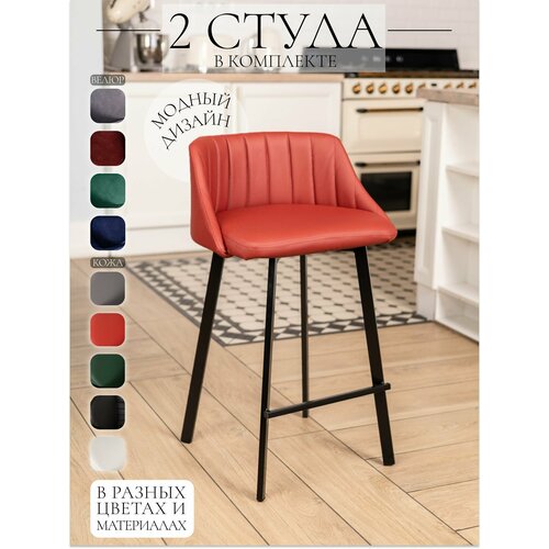 Полубарный стул Velex комплект 2шт, цвет бордовый кожзам, основание черное, высота 65 см