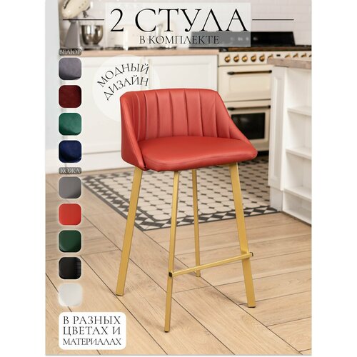 Купить Полубарный стул Velex комплект 2шт, цвет бордовый кожзам, основание золотистое, высота 64 см с доставкой по всей России.