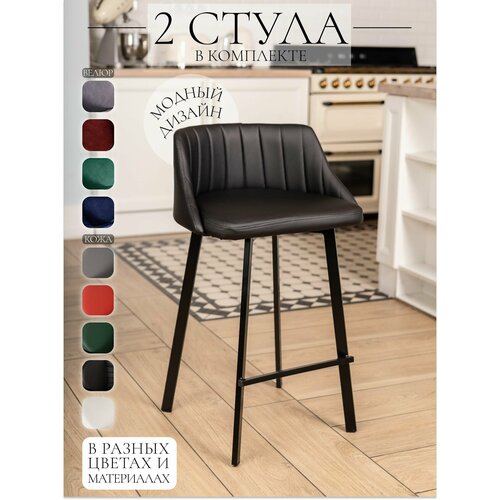 Полубарный стул Velex комплект 2шт, цвет черный кожзам, основание золотистое, высота 64 см
