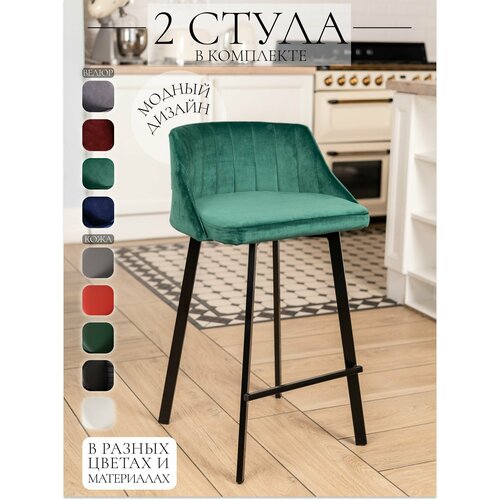 Полубарный стул Velex комплект 2шт, цвет изумруд велюр, основание черное, высота 65 см: сравнение цен, характеристики, фото, актуальное наличие и цены.