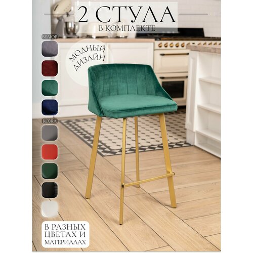 Полубарный стул Velex комплект 2шт, цвет изумруд велюр, основание золотистое, высота 64 см