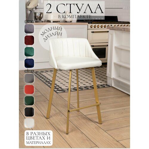 Купить Полубарный стул Velex комплект 2шт, цвет молочный кожзам, основание золотистое, высота 64 см с доставкой по всей России.