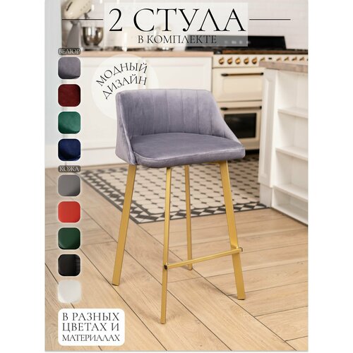 Полубарный стул Velex комплект 2шт, цвет серый велюр, основание золотистое, высота 64 см