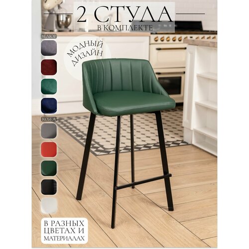 Полубарный стул Velex комплект 2шт, цвет зеленый кожзам, основание черное, высота 65 см