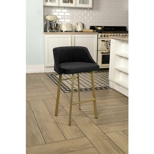 Полубарный стул Velex со спинкой, цвет черный велюр, основание золотистое, высота 64 см
