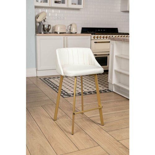 Полубарный стул Velex со спинкой, цвет молочный кожзам, основание золотистое, высота 64 см
