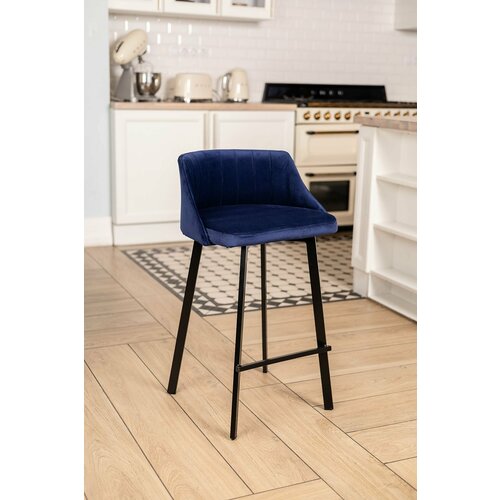 Полубарный стул Velex со спинкой, цвет синий велюр, основание черное, высота 65 см