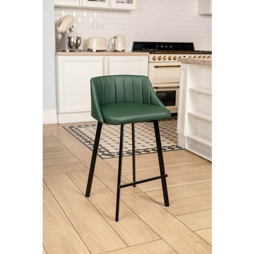 Полубарный стул Velex со спинкой, цвет зеленый кожзам, основание черное, высота 65 см