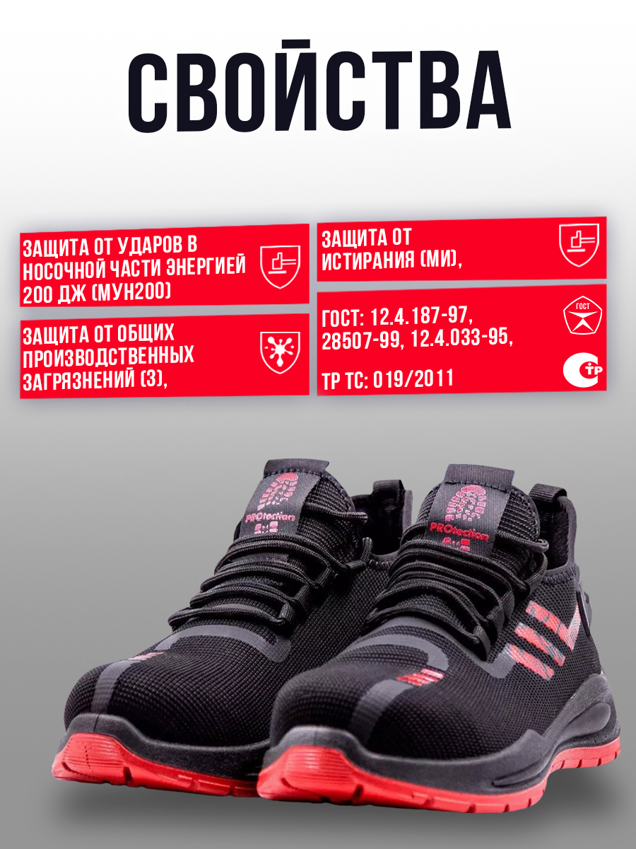 Полуботинки Протекшн 5333К, комп. подносок 200 Дж, ПУ/ТПУ, черные/красные. Тип обуви: Полуботинки. Размер:46: сравнение цен, характеристики, фото, актуальное наличие и цены.