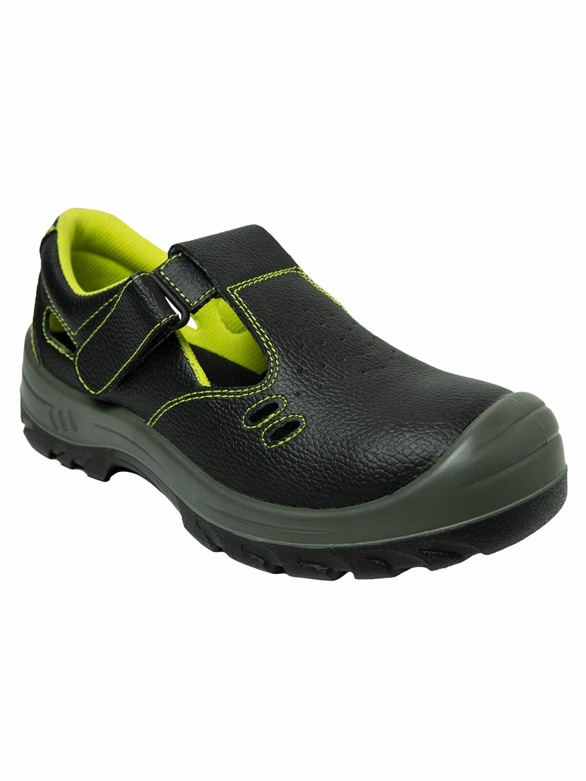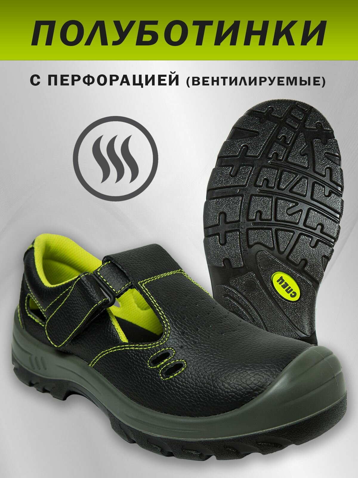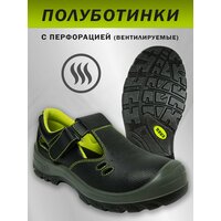 Полуботинки для работы "спец" с перфорацией для вентиляции и усиленным термопластичным подноском. Рекомендуется для работников предприятий большинства отраслей промышленности в летнее время года или в отапливаемом помещении (круглый год). Лёгкие полуботинки / сандалии с липучкой для быстрого снятия, съёмной стелькой из вспененного материала с тканевым покрытием, обеспечат комфорт при носке.
