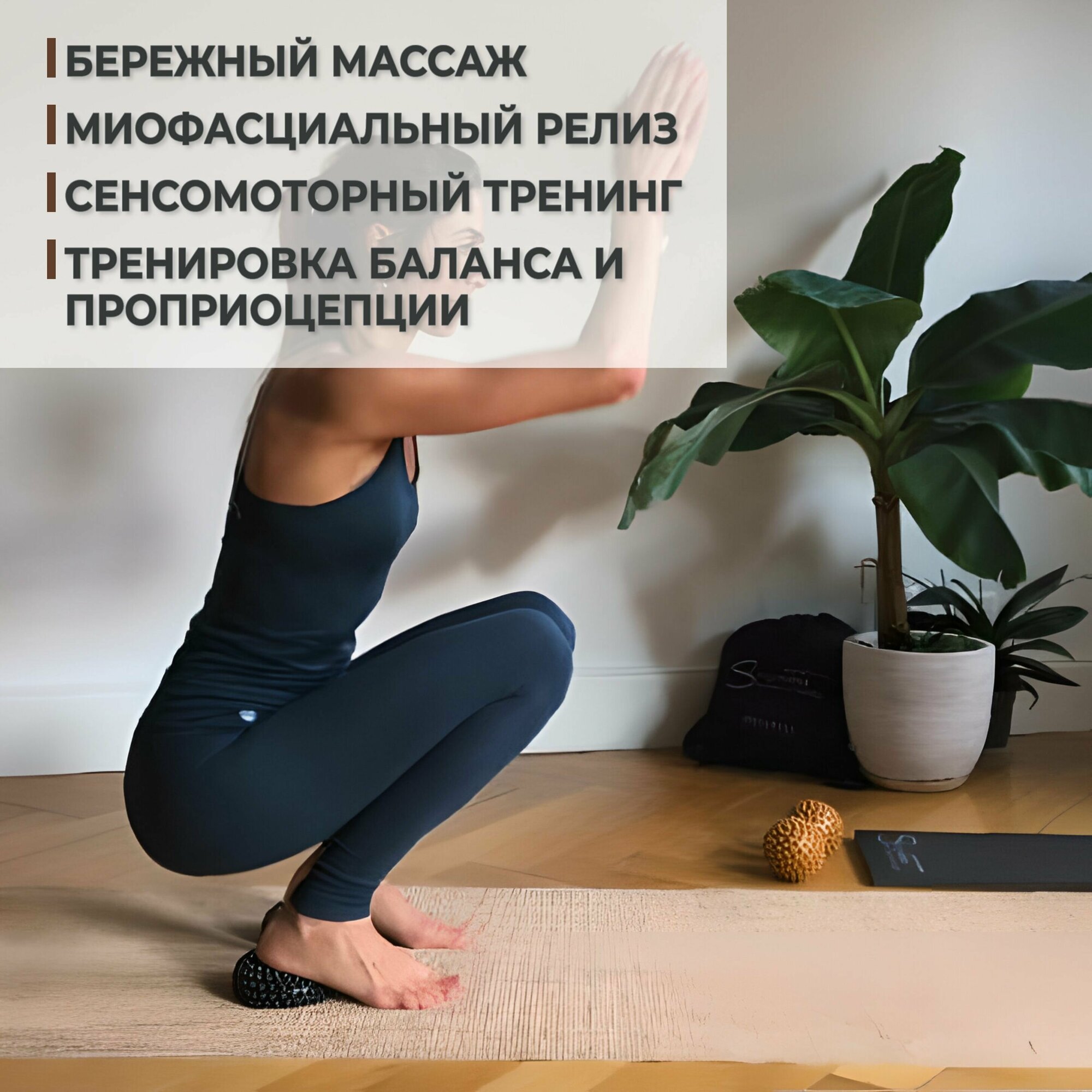 Применяется для тренировок по системе Slings in Motion от компании Art of Motion. Бережный массаж и миофасциальный релиз. Тренировка баланса и проприоцепции, сенсомоторный тренинг.