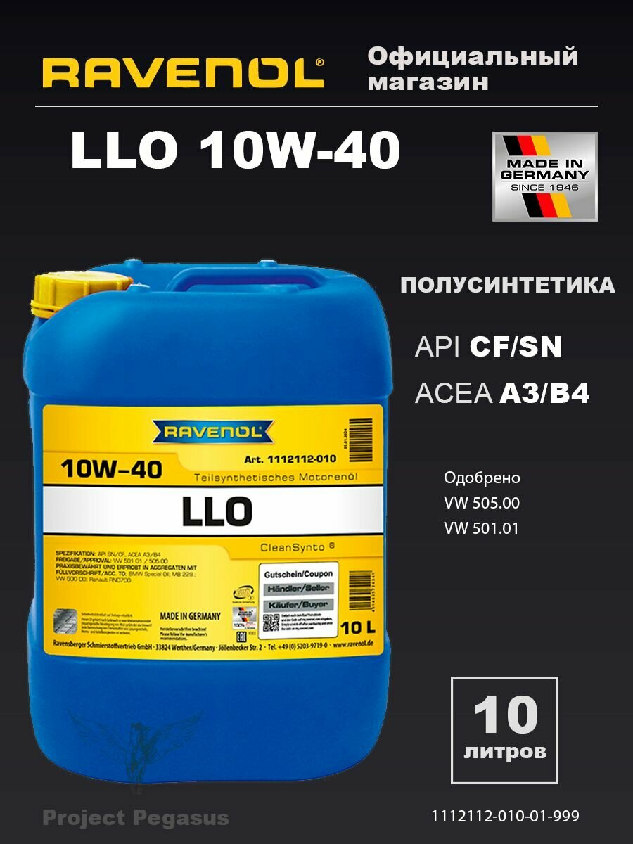 Моторное масло RAVENOL LLO 10W-40 10 л.: сравнение цен, характеристики, фото, актуальное наличие и цены.