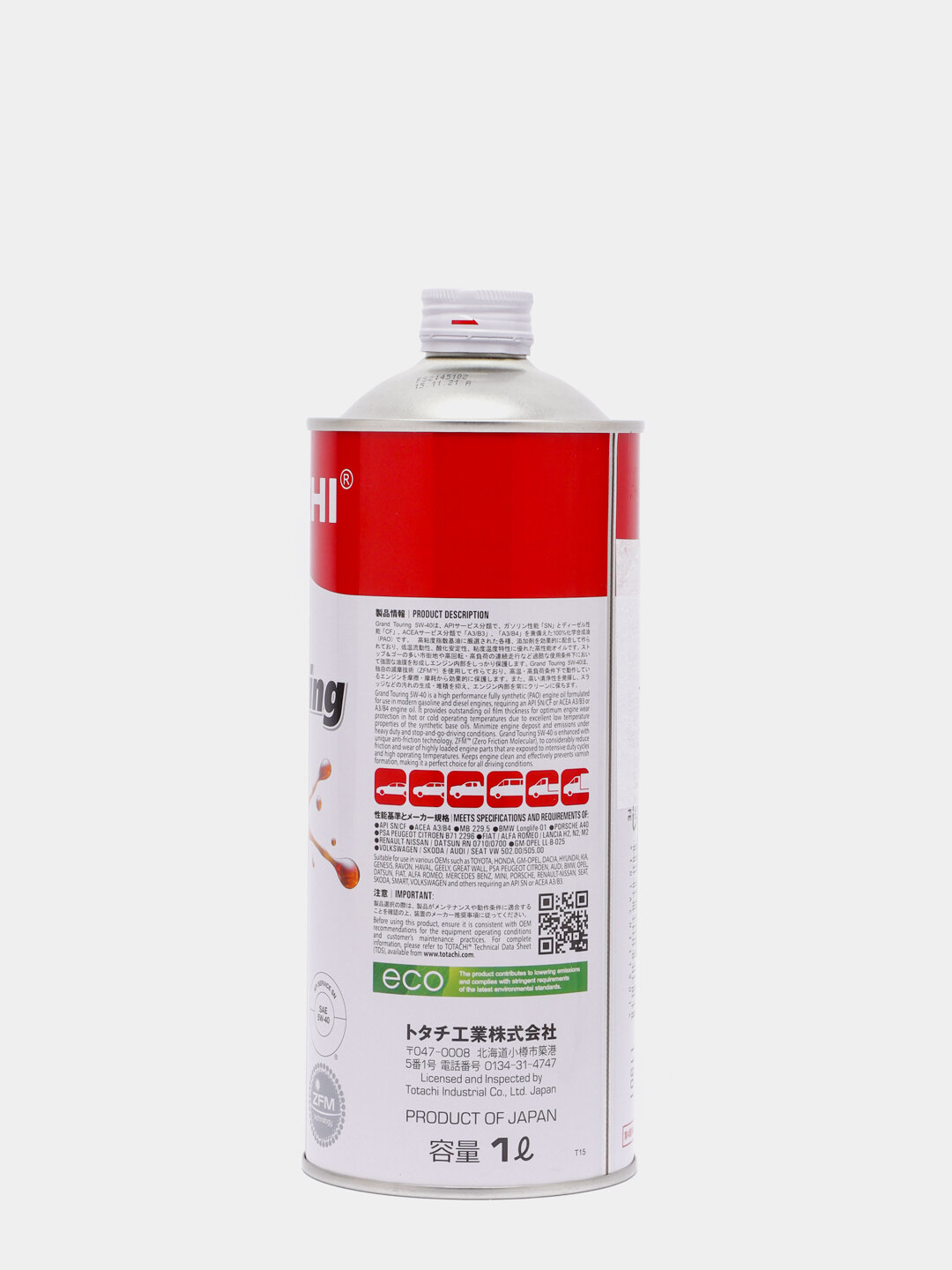 Моторное масло GRAND TOURING 5W-40 отвечает или превосходит гарантийные требования OEM-производителей техники с бензиновыми и легко-нагруженными дизельными двигателями, которым предписано применение моторных масел с Категориями API SN/SM/SL или ACEA A3/B3, A3/B4 соответственно. Компания TOTACHI® гарантирует полное соответствие продукта заявленным на этикетках спецификациям.