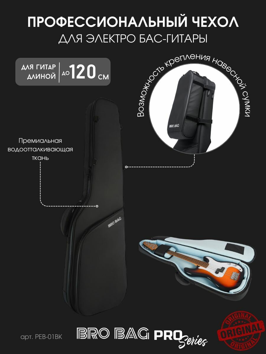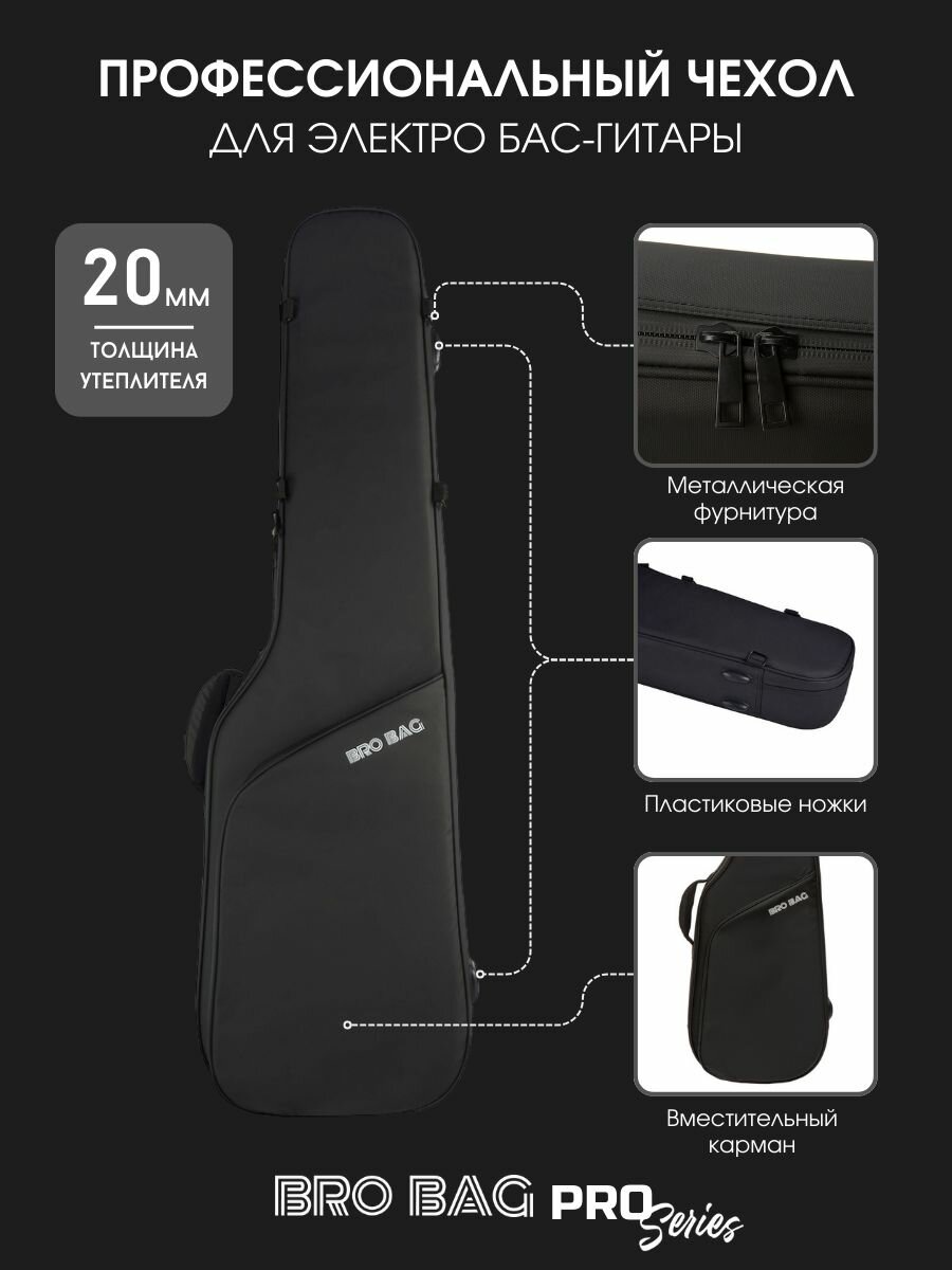 Утепленный чехол из премиального водоотталкивающего материала. Подойдет для электро бас гитар стандартных форм длиной до 120 см.