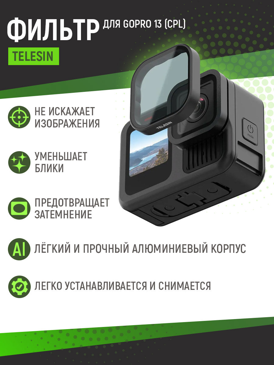 Купить Поляризационный CPL фильтр Telesin для GoPro 13, S5-FLT-08-TGP с доставкой по всей России. Поляризационный CPL фильтр Telesin для GoPro 13, S5-FLT-08-TGP: сравнение цен, характеристики, фото, актуальное наличие и цены.